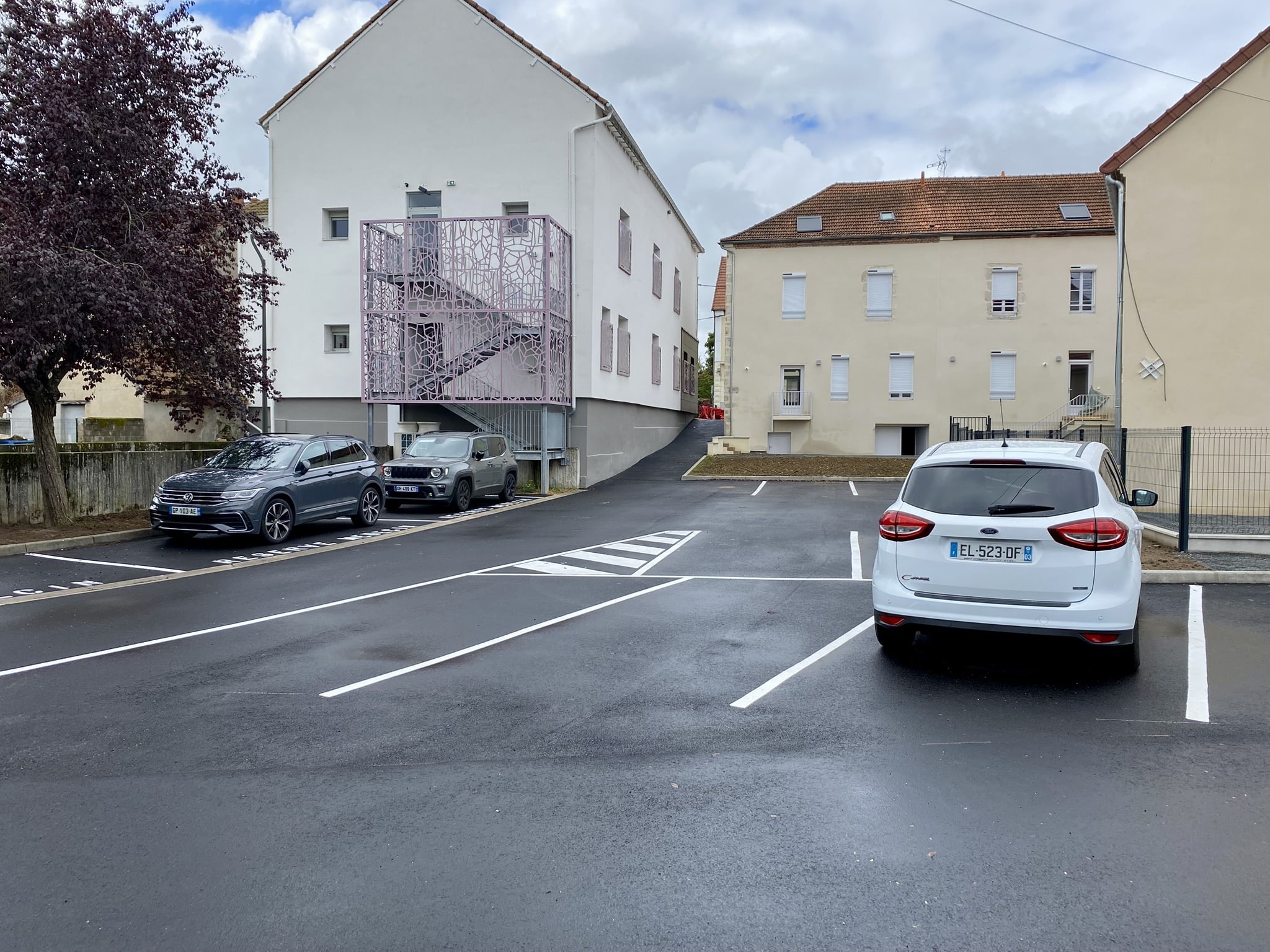 Cet aménagement a permis de créer 14 nouvelles places de stationnement dans un espace végétalisé à proximité des 9 logements sociaux du bailleur Évoléa et du Pôle Santé Simone-Veil.